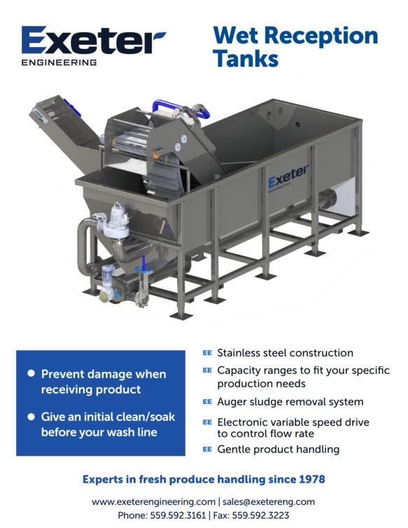 Wet reception tanks for produce washing that are rugged and ready to gently wash your product